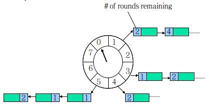 现在,每个任务除了要维护在当前轮盘的 round ,还要计算在所有下级轮盘的 round 。当本层的 round 为0时,任务按下级 round 值被下放到下级轮子,最终在最底层的轮盘得到执行。
