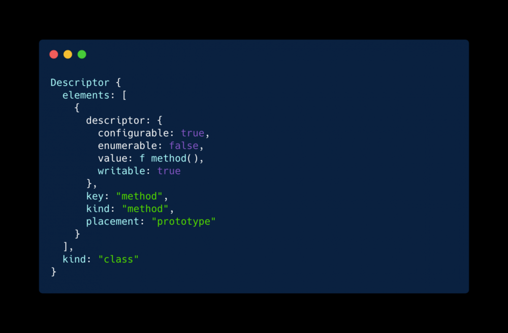 与 TypeScript 以前之前的装饰器的区别在于,声明的装饰器方法的参数,为 Descriptor 类型。