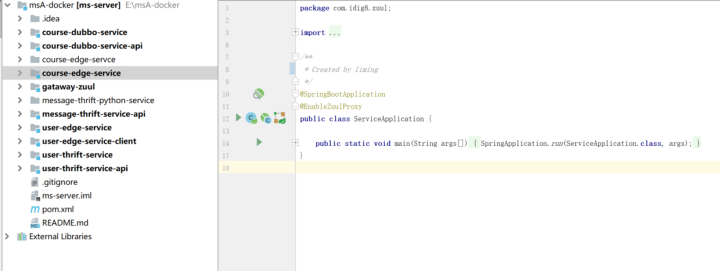 微服务的依赖,了解docker的老铁应该知道可以通过link的方式,去根据名字搜索到这个服务,只要不在开发范围内的,认为是通过另外的介入方式ip,域名的方式。通过docker分为2种情况,微服务和微服务之间的通信,微服务和外围系统的通信。 修改配置文件 和 pom.xml文件