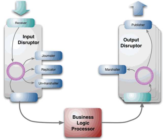 正在运行的业务处理器是集群的,因此多个处理器与输入数据保持同步,如果任何业务处理器发生故障,另一个可以被视为主服务器,停机时间为零。