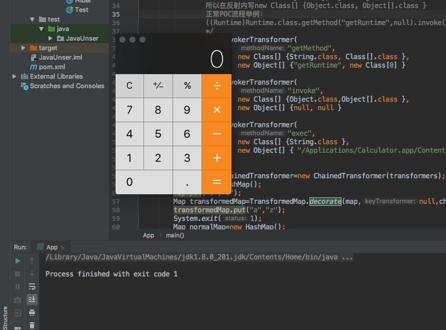 实际执行的代码便是 ((Runtime) Runtime.class.getMethod("getRuntime").invoke()).exec("/Applications/Calculator.app/Contents/MacOS/Calculator")
