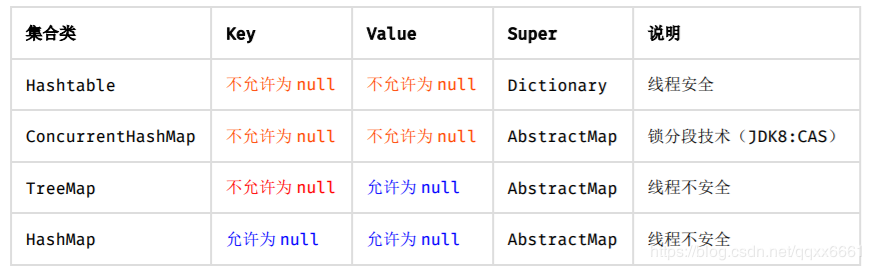 【推荐】高度注意 Map 类集合 K/V 能不能存储 null 值的情况,如下表格: