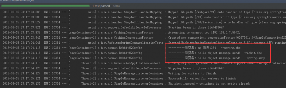 rabbitTemplate.convertAndSend("topic001", "spring.amqp", "hello object message send! -spring.amqp");