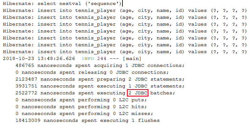 这里使用GenerationType.SEQUENCE激活批插入处理,通过hi/lo算法优化它。
