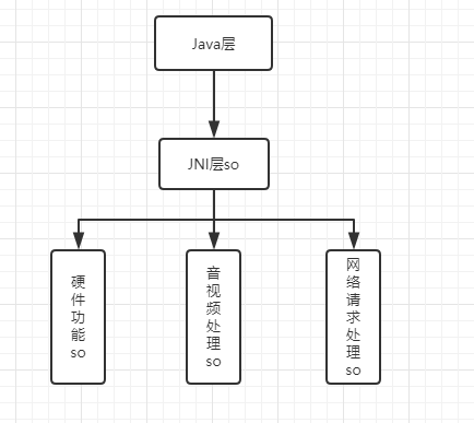 随着App功能的不断增多,Native层的代码规模也在迅速膨胀,为了Native层的代码结构清晰,会按照模块分别构建成独立的so库,使用一个JNI层so库引用其他实现具体功能的功能实现so库,Java层只加载这个JNI层so库,来间接调用功能实现so库。