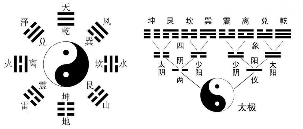 在八卦之上再添加阴阳变化,就形成64卦,如果万物都由阴阳生成