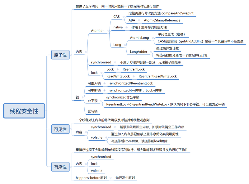 线程安全性主要体现在三个方面:原子性、可见性、有序性: