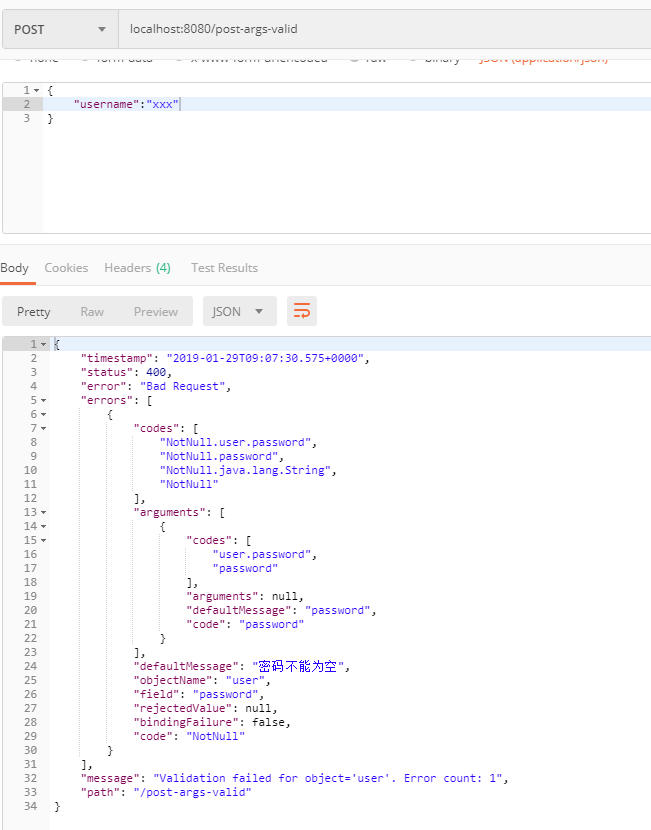 public String postArgsValid(@Valid<1> @RequestBody User user) {