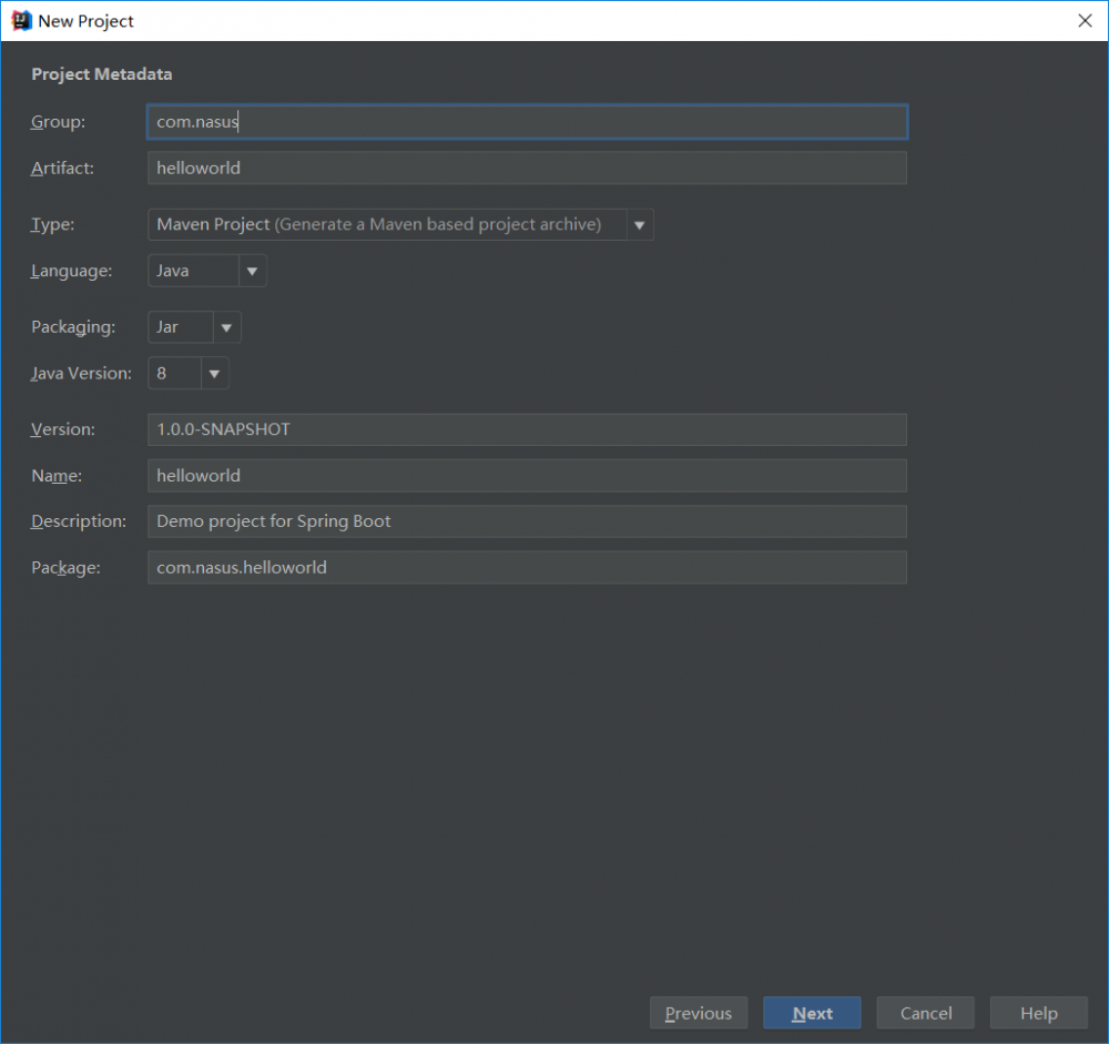 学过编程的都知道,学习一门新语言的第一个项目肯定是 Hello World 。那这里也不例外,我们先创建一个非常简单的 Hello World 工程。给大家讲解 SpringBoot 的项目目录。创建信息如下: