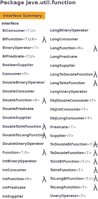 java.util.function.Function Java Interface Function<T,R> Parameter Types: T - the input given to the function R - the result running the function Popular Subinterface of Function: UnaryOperator<T>