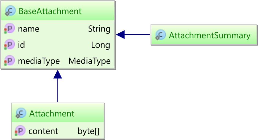 无论是Attachment实体和AttachmentSummary子实体继承BaseAttachment所有公共属性