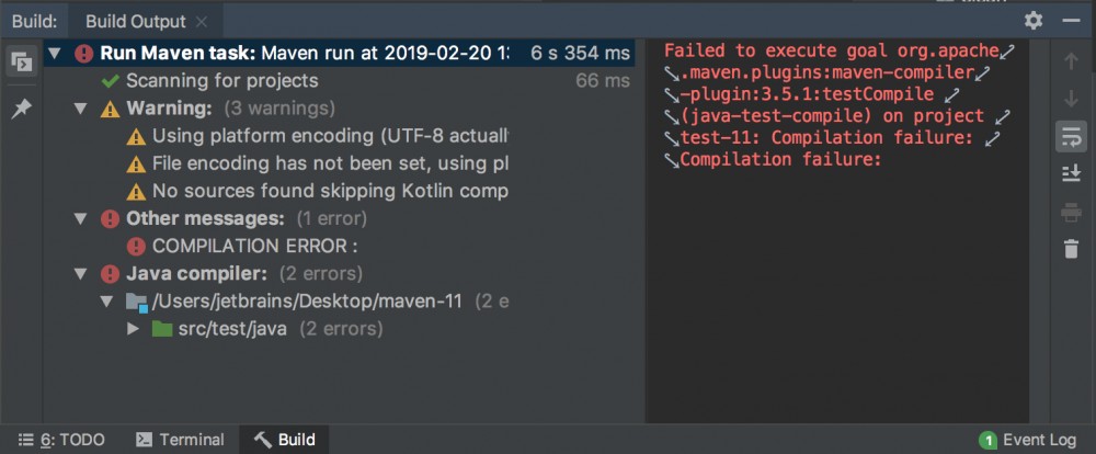 在即将发布的 IntelliJ IDEA 2019.1 中,所有 Maven 构建输出都将显示在 Build Tool 窗口中。以往 Maven 构建的输出是出现在“运行”或“消息”窗口,但是这查找起来比较麻烦。现在有一个 Build Tool 窗口,可以在一个地方查看与构建相关的所有 Maven 输出。
