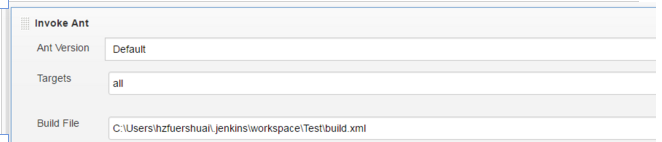 ant插件安装成功后,在配置项中指定build.xml的路径,利用jenkins自动构建时会根据路径找到build文件,执行文件的配置内容。因此为了能够实现自动化,需要定制build.xml。下面给出我的build文件作为参考,可以通过替换路径作为己用。
