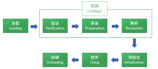 类加载有以下三个阶段: