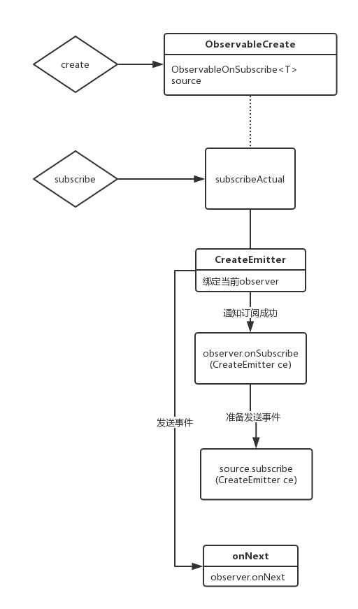 同样的方式,对我们传入的Observer观察者对象进行检查以及预处理,最终调用subscribeActual方法,该方法是一个抽象方法.所以我们直接看它的实现类,也就是ObservableCreate对象下的subscribeActual方法.