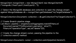 当复制到另一个MongoDB时,这些都不是大问题,因为数据库和集合创建是在新文档生成时创建的,可以推测出来。复制集合的困难点在于,检查新集合是否影响以前的集合,还有就是我们监控不到创建索引和其他操作,这些操作不会反映在为更改文档的日志中,不能通过变更流监控。