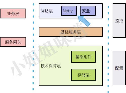 但从项目来说,麻雀虽小五脏俱全,从业务层到服务网关,以及各种技术保障,包括监控和配置,都是需要考虑的因素。netty本身占比很小。