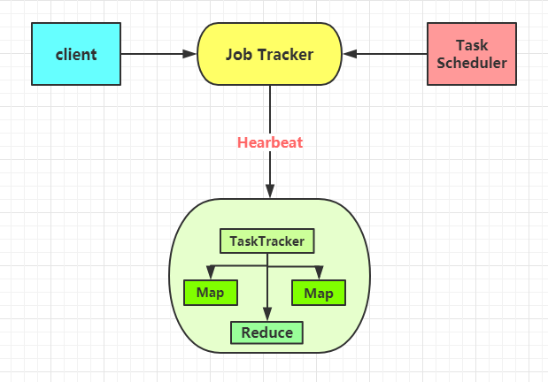 这里的Client和TaskTracker我都使用一个来简化了,在实际中是会有很个Client和TaskTracker的。