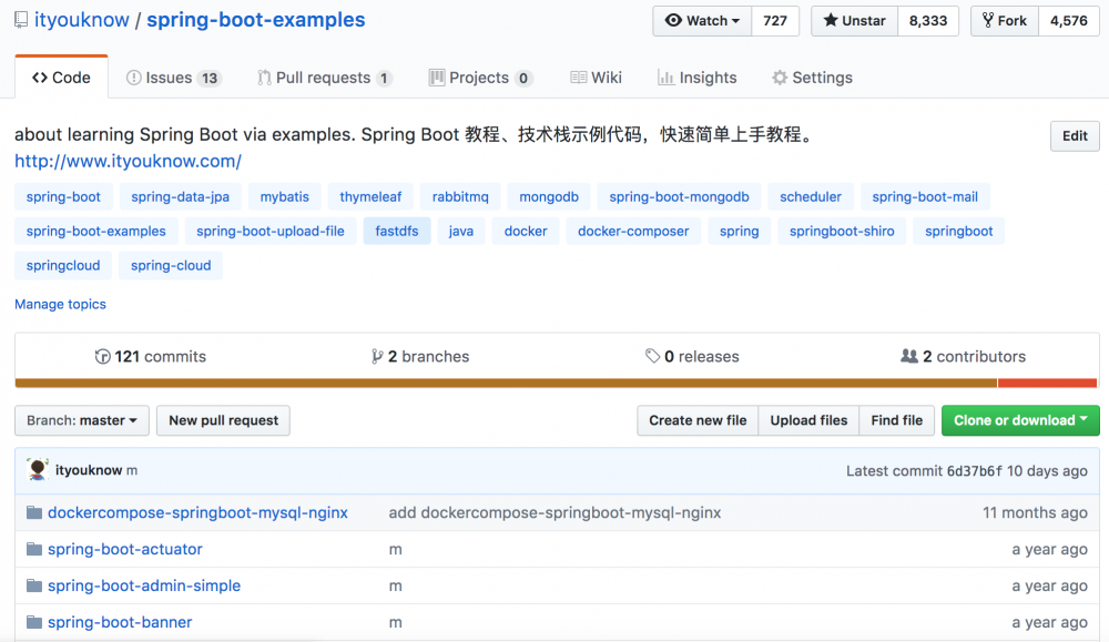 近三年的时间写了一百多篇关于 Spring Boot 的文章(包含两个课程),在写文章的过程中将文中的示例项目托管在 Github 上面,随着学习 Spring Boot 的朋友越来越多,在 Github 上面的关注(Star)人数也越来越多,到现在已经高达 8300 多个 Star。