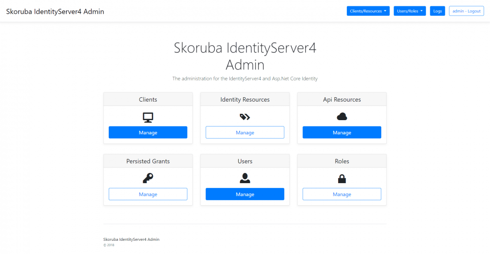 免费开源的 IdentityServer4 与 Asp.Net Core Identity 管理器。IdentityServer4 官方的管理器是收费的,该项目很好的替代了官方管理器,可以方便的管理使用 IdentityServer4 所搭建的认证服务器