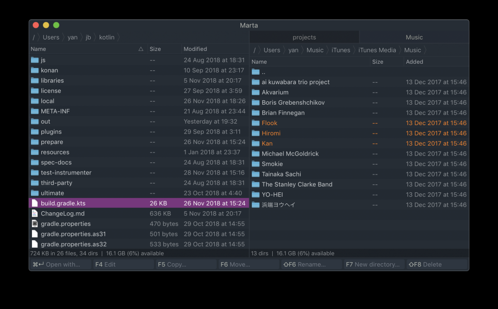 - 一直在找macOS上的文件管理器。我已经被dual pane文件管理器洗脑。其它的没法用了。之前找到最好的是muCommander。虽然是Java写的, UI有些土,但是功能基本满足我的要求 - 毕竟我很多时候是活在shell里面的。但是muCommander在macOS升级之后不好用了。因为Java版本不匹配。这个marta看起来相当不错。