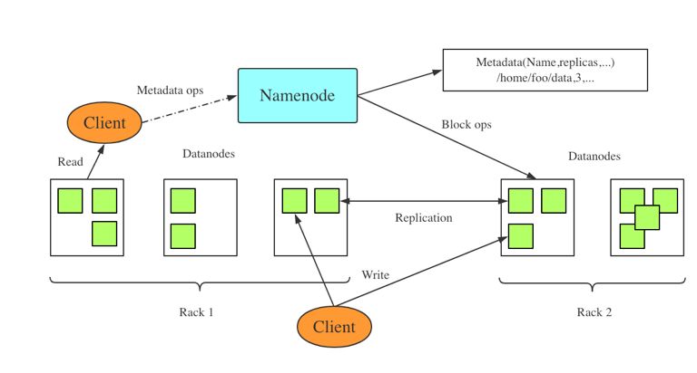 HDFS是作为最底层的分布式存储服务而存在的,是Hadoop的分布式文件系统组件。HDFS是高容错的,被设计成在低成本硬件上部署。HDFS为应用数据提供高吞吐量的访问,适用于具有大规模数据集的应用程序。HDFS采用了基于Master/Slave主从架构的分布式文件系统, 一个HDFS集群包含的Master节点(NameNode)和多个Slave节点(DataNode)服务器,文件以block的形式存储在DataNode节点。NameNode主要负责响应客户端请求,进行文件的打开、关闭、重命名文件和目录,同时决定block到具体Datanode节点的映射。Datanode在Namenode的指挥下进行block的创建、删除和复制。