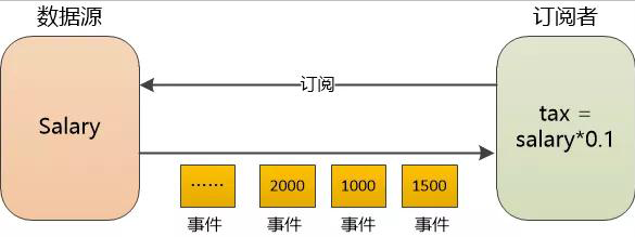 IO大臣继续说:“陛下不用烦恼,老头儿说的问题,我们Java早已经提供了对应的解决方案,那就是发布者-订阅者模式啊。如果把Salary当成一个数据源的发布者, 把Tax当成一个订阅者,注册到Salary当中, 每当Salary有变化,就发送一个事件给Tax,Tax收到后,做相应的计算就可以了。”