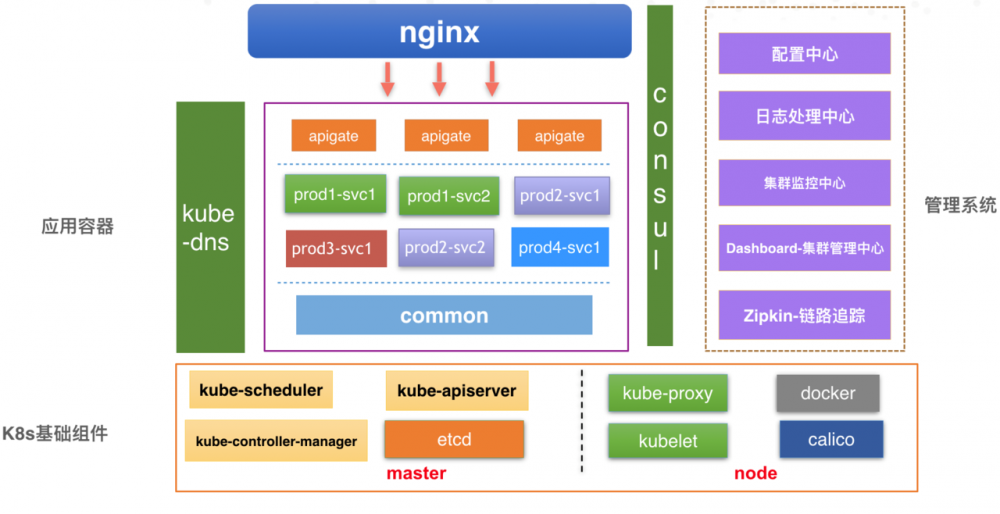 个推微服务主要是基于Docker和Kubernetes进行实践的。在整个微服务架构中,最底层的是个推私有部署的Kubernetes集群,在集群之上,部署了应用服务。