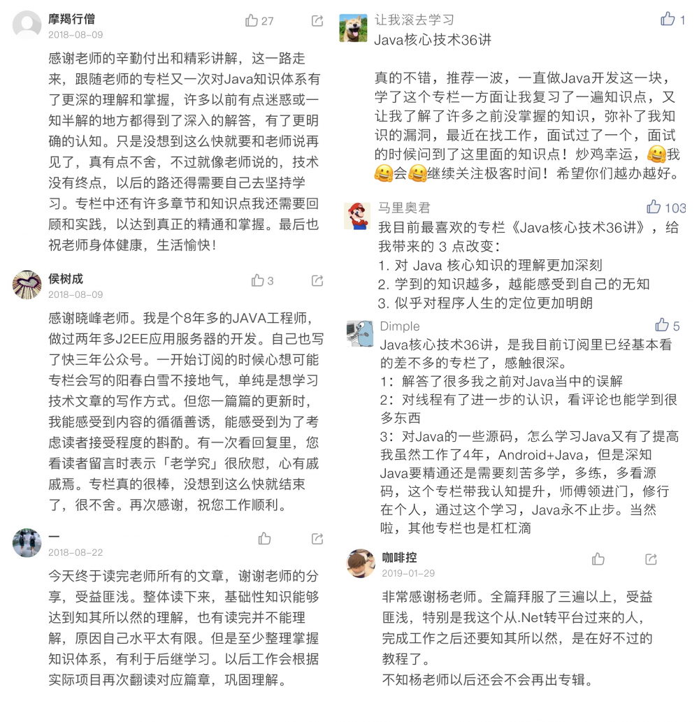 专栏订阅量稳居极客时间 Top 3,好评多多,部分如下: