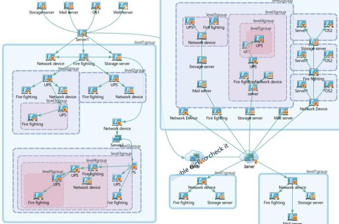 这套可视化工具很容易实现这点,我们只需要先可视化的设计出部署架构布局,然后再将实际对数据库,应用中间件资源,包括服务运行的各种状态信息,异常信息直接显示到整体部署逻辑架构图上即可。这样可以更加可视化的监控到资源当前的运行状态和异常发生情况。