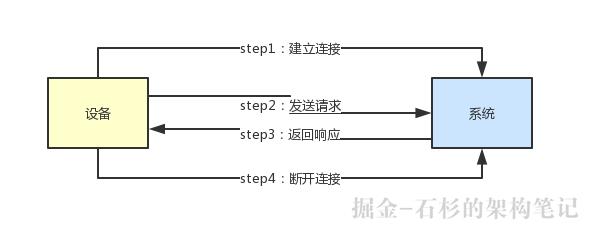 那如果一个设备跟你的系统建立好一个连接,然后接着就不停的通过这个连接发送请求接收响应,就可以避免不停的创建连接和断开连接的开销了。
