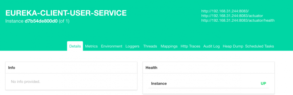 关键是如何去修改这个地址啊,我们想想看,Spring Boot Admin只是一个展示平台,本身是不存储信息的,我们用的是整合了Eureka的方式,所以信息都是从Eureka过来的,查看下Eureka中服务的信息就知道了。