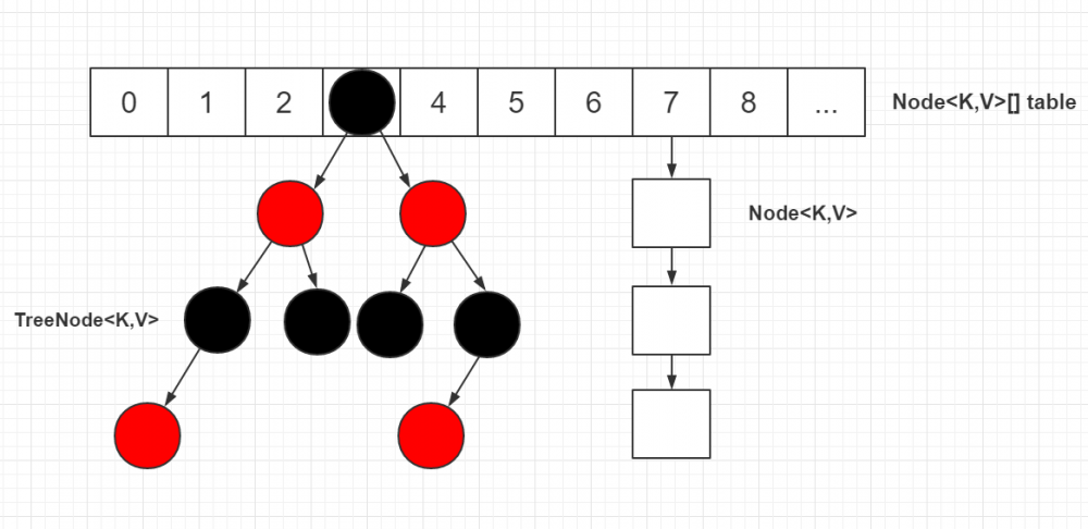 那么如果冲突的元素很多,那么链表岂不是会很长,因为我们知道链表查询是效率很低的,需要一个一个的遍历,那么在JDK1.8中,当链表长度超过一定阈值时,直接进行数据结构转换,将链表转化成红黑树,红黑树是一种平衡二叉树,时间复杂度是O(logn),具体红黑树的原理就不分析了,不在此文章范围内。
