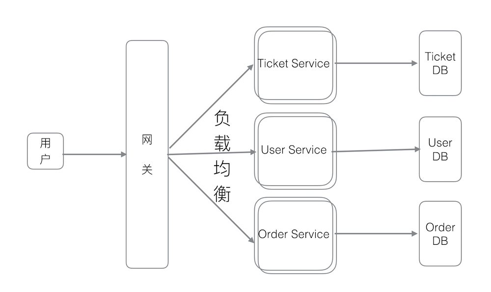 总共有3个服务:Order,User,Ticket分别用于处理交易、用户、票相关的业务。