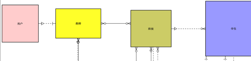 用户 1:1教师 ,教师 m:n 班级,班级 1:n 学生