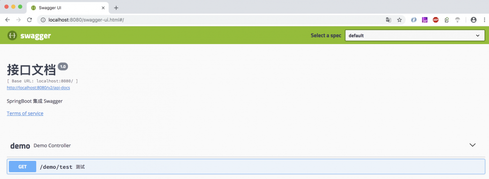 ⑤ 最后启动项目,访问 http://localhost:8080/swagger-ui.html 测试 Swagger。