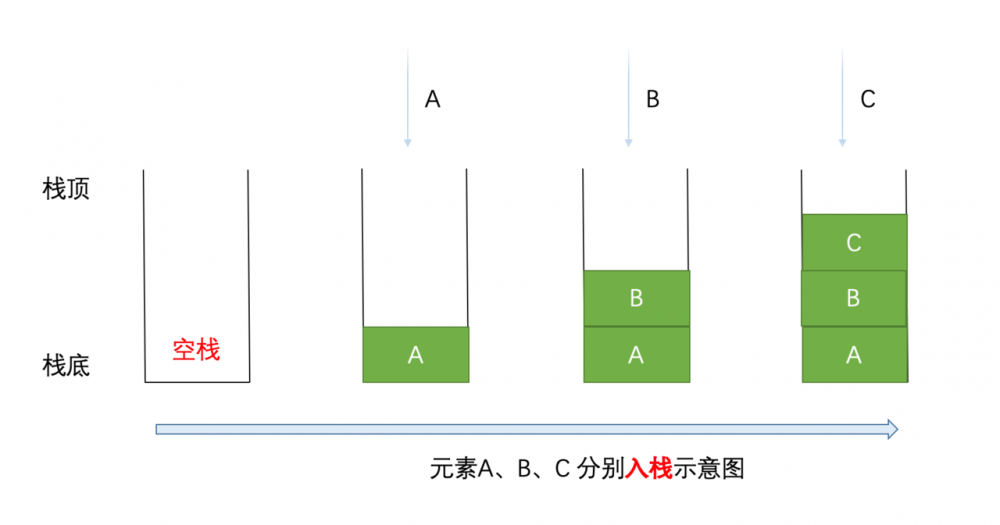 为了大家更好的形象了解我们通过示意图来看一下栈的 入栈 和 出栈 操作