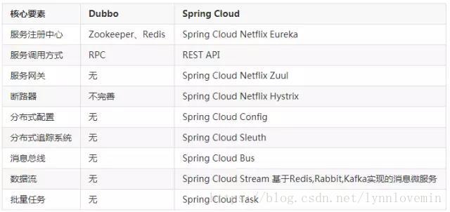 Dubbo 只是实现了服务治理,而 Spring Cloud 实现了微服务架构的方方面面,服务治理只是其中的一个方面。下面通过一张图对其进行比较:
