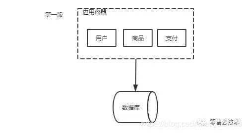 1.一开始我们搭建一个初始版本的系统或在市场买一个系统,他们的架构或许是这样的如下图