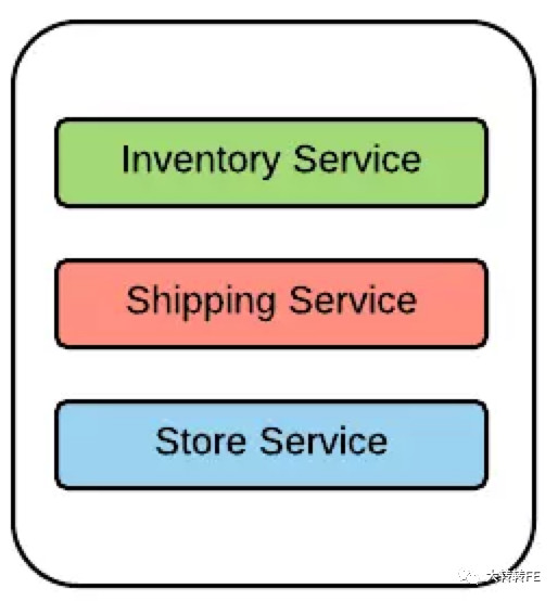多数情况下,SOA中的服务彼此独立,只不过它们与所有其他服务一起部署在相同的运行时间里(只需考虑将部署到同一个Tomcat实例中的多个Web应用)。和单片软件应用类似,这些服务通过积累各种功而具有随时间推移的习惯。图1是一个非常好的一个单片架构的例子,显示了包括多个服务的零售软件应用,所有这些服务都能部署到同一应用程序。