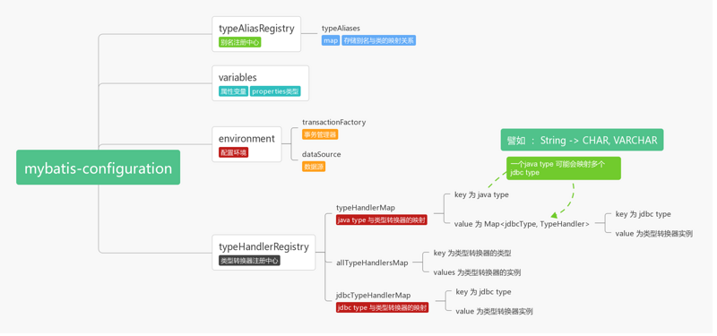 typeAliases 存储别名与类的映射关系 javaType 与 jdbcType , typeHandler 的映射关系,内置 jdbcType 与 typeHandler 的映射关系