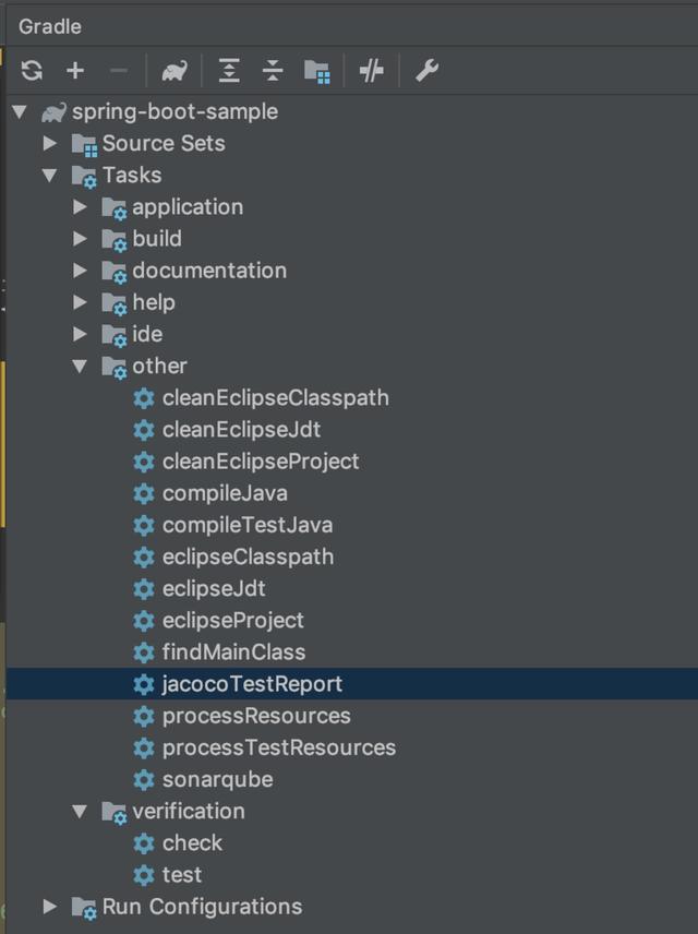 或者可以再Gradle的工具菜单中 Tasks -> other -> jacocoTsestReport 可以直接启动单元测试的分析。