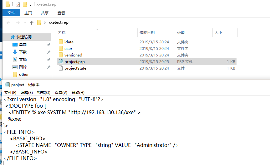脚本将会在80端口开启HTTP服务。然后回到Win10中新建一个Ghidra工程,修改工程中的project.prp,插入XXE攻击代码,如下图所示