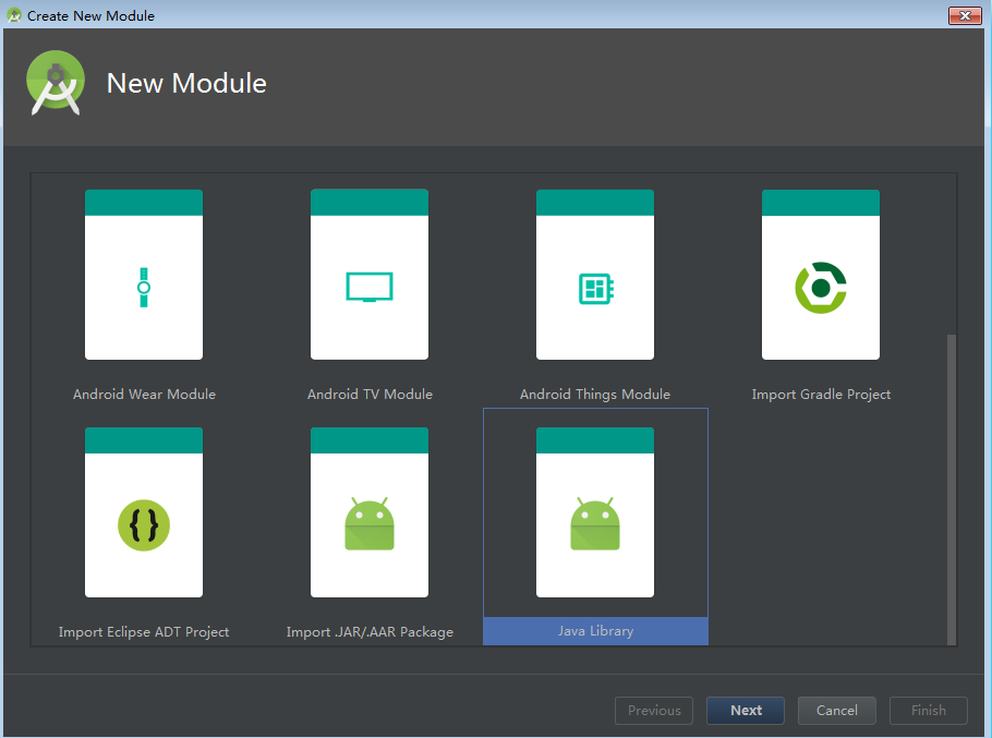 因为编译时注解需要用到AbstractProcessor这个类,而这个是在JDK里面的,所以我们需要Android Stuio中新建一个Java lib