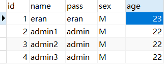 SysUser sysuser = new SysUser(1, "eran", "eran1", 20, "M");
