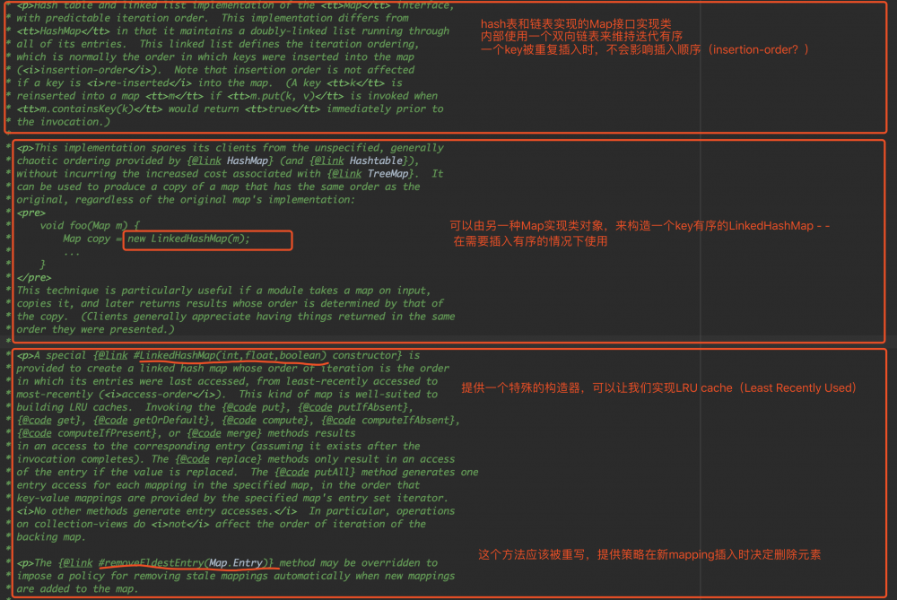LinkedHashMap,通过hash表和链表实现。保持迭代有序,与HashMap不同的是,其内部维护了一个双向链表,该链表贯穿了所有元素。
