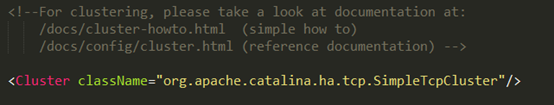 配置Tomcat集群也很简单,本地修改server.xml,加入Cluster节点即可:
