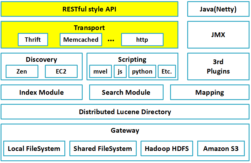 这种连接方式对应于架构图中的Transport这一层,这种客户端连接方式是直接连接ES的节点,使用TCP的方式进行连接.