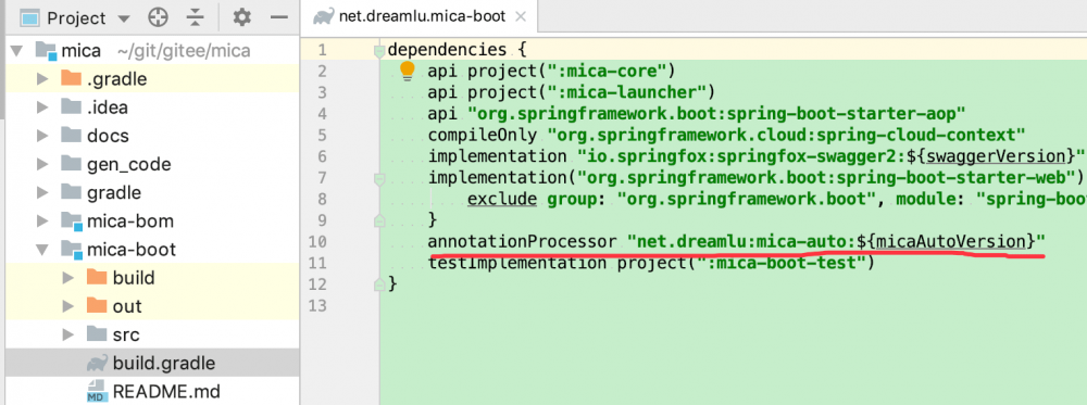 annotationProcessor("net.dreamlu:mica-auto:${version}")
