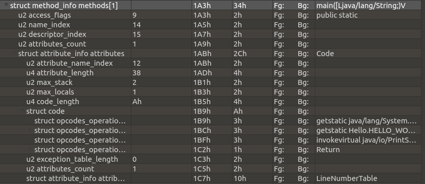 局部变量表是一组变量值存储空间,用于存放方法参数和方法内部定义的变量。在 Java 程序编译 Class 文件时,就在方法的 Code 属性的 max_locals 数据项中确定了该方法所需分配的局部变量表的最大容量。在我之前一篇文章Class 文件格式详解 中,详细解析了 Class 文件结构,我们再来回顾一下它的 main() 方法的 Code 属性: